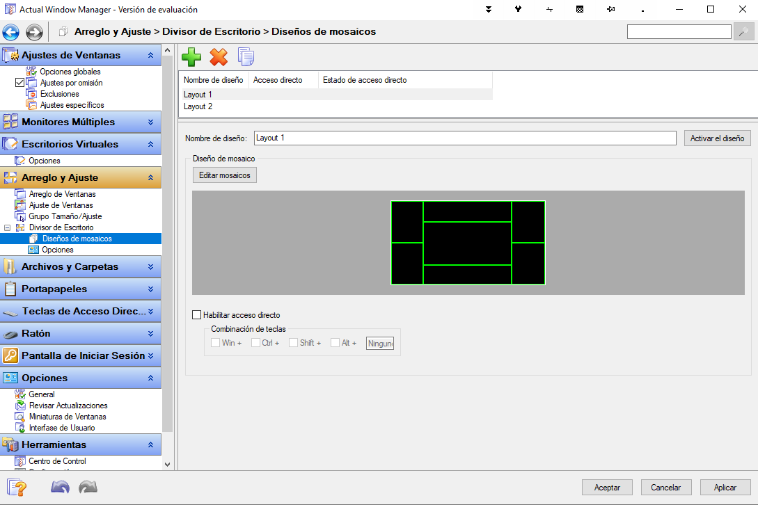No obstante, no puedo dejar atrás Actual Window Manager, su versión gratuita ofrece una introducción útil a sus capacidades, lo que puede ser atractivo para aquellos que buscan mejorar la organización de sus ventanas sin incurrir en costos.