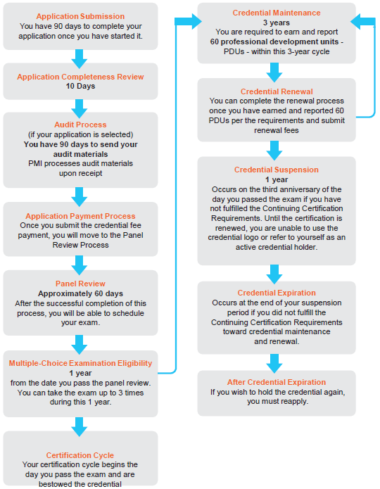 Hasta aquí el proceso de elegibilidad para el examen. Si logras superarlo, deberás mantenerlo renovando 60 PDUs (60 horas de formación homologada, seminarios, conferencias, etc) cada 3 años, al igual que ocurre con el PMP.